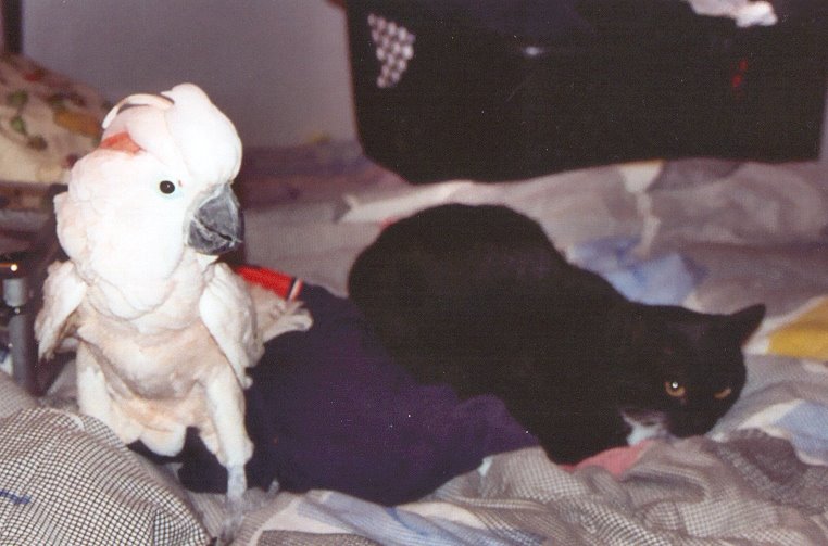 Cockatoos need an awful lot of attention and my dad was the only person in the house that could handle him. I grew up with this creature and was always afraid of him. Over the years, he was neglected. When I took him on, as an adult, I decided that I had to get over it and make a better life for him. Volunteering at the Refuge taught me how to meet my own parrot’s needs. Eventually, even the cat could put up with him.