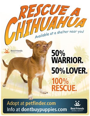 I have a friend who wanted to rescue a small dog, and she said the only ones she could find for a while were chihuahuas. This was around when Taco Bell was running all those commercials with the talking chihuahua. She ended up with a poodle/maltese mix. I shudder to think of there being even more chihuahuas at the shelters after this movie.