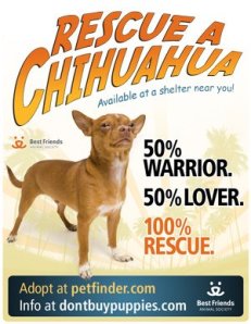 Chihuahuas are the 5th most-posted breed of dog for adoption on Petfinder (after Labs, Shepherds, Pit bulls and mixes of those breeds).