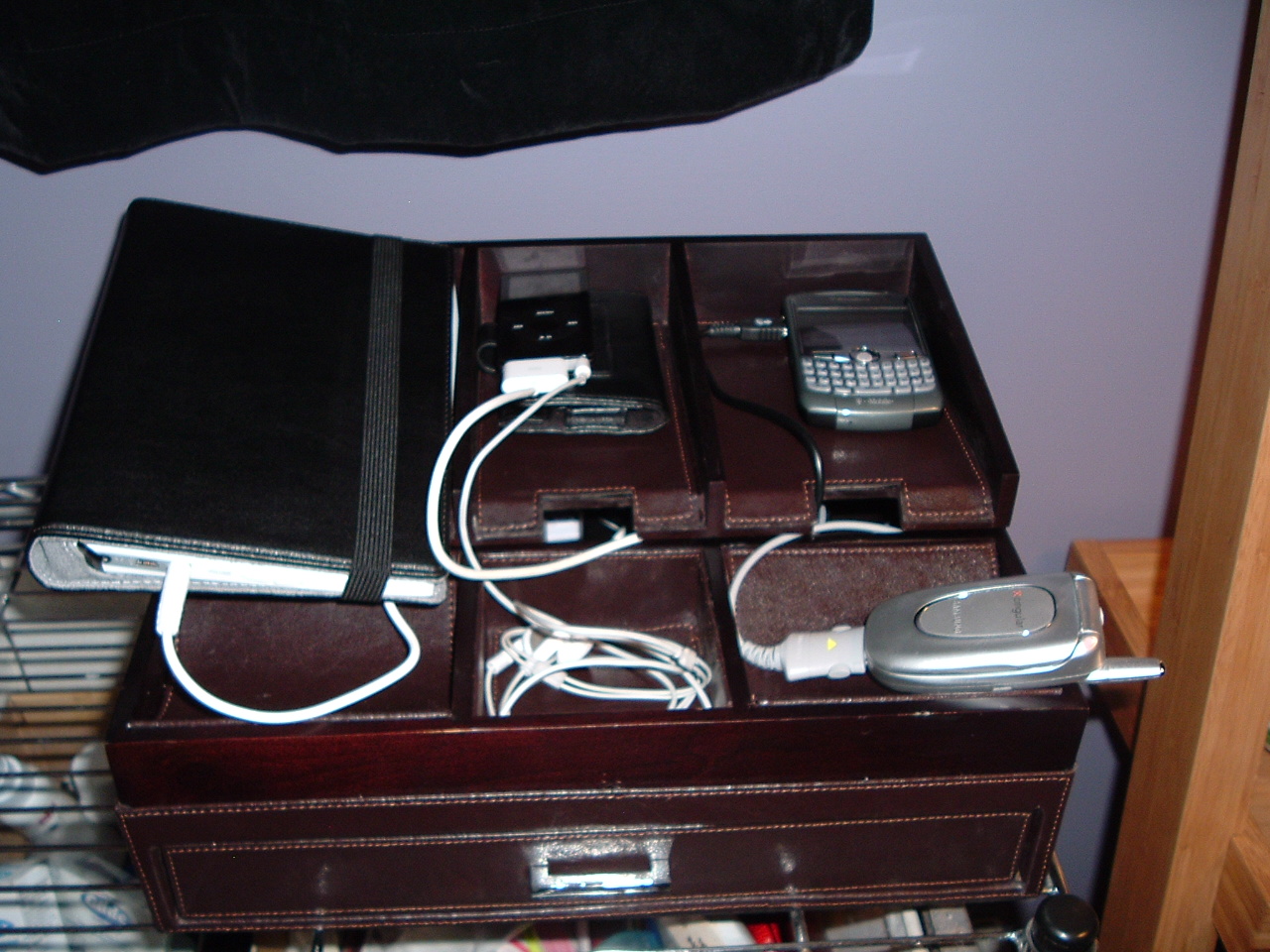 This, Ladies and Gentlemen, is a charger station. I had so many cords and plugging and unplugging and the Blackberry can’t last the weekend without some juice so I picked this up at Bed Bath & Beyond.
