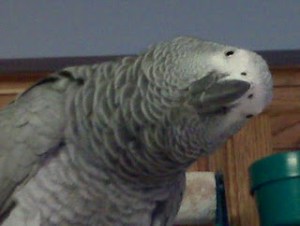 I brought Eloise the Grey back home from the Refuge when I returned from San Antonio. She is still on her meds from the fungal infection and it seems that she lost weight again so she is on a supplement. Karen, our volunteer director, likened it to baby cereal. I mix it up and feed it to her from a large syringe. She laps it right up. When she isn’t dribbling and wiping her beak on the counter and shaking her head and splashing it all over my shirt.