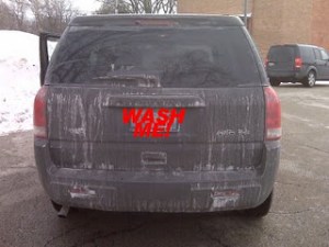 The salt is still not gone! But I think it is clean enough to get my license plate sticker to stick.