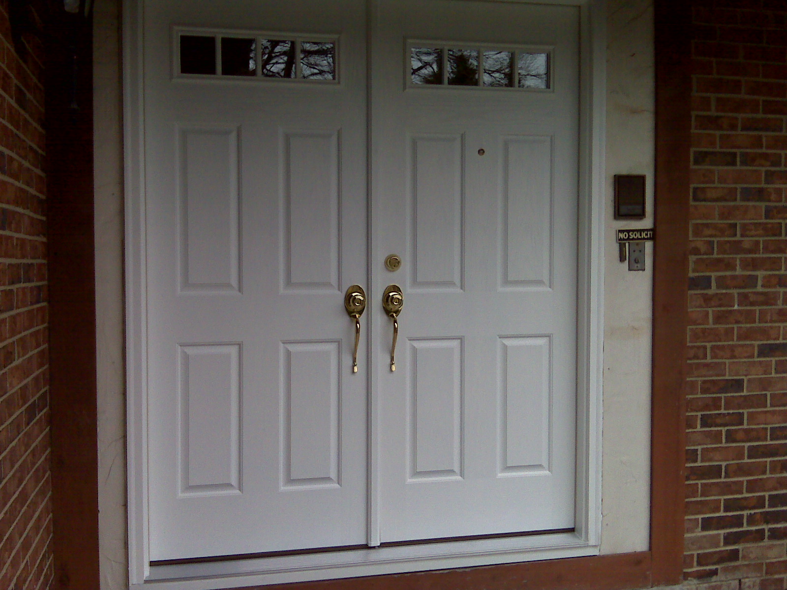 The front hall is much darker now that we have the smaller windows way up there. Our compromise was I wanted to keep the double door concept and she wanted something that a burgler couldn’t smash to reach an arm in and unlock the door. Everyone is happy.