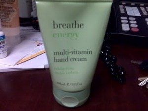 Breathe:energy from Bath & Body Works has shea butter, so for work I’ll have to be careful what I touch after applying it. But that means it does last for the entire time between bathroom breaks/hand washings. The scent on this one is ginger verbena, which I really like. It was pretty expensive at $12.50, but I bought it at 75% off at the last clearance sale.