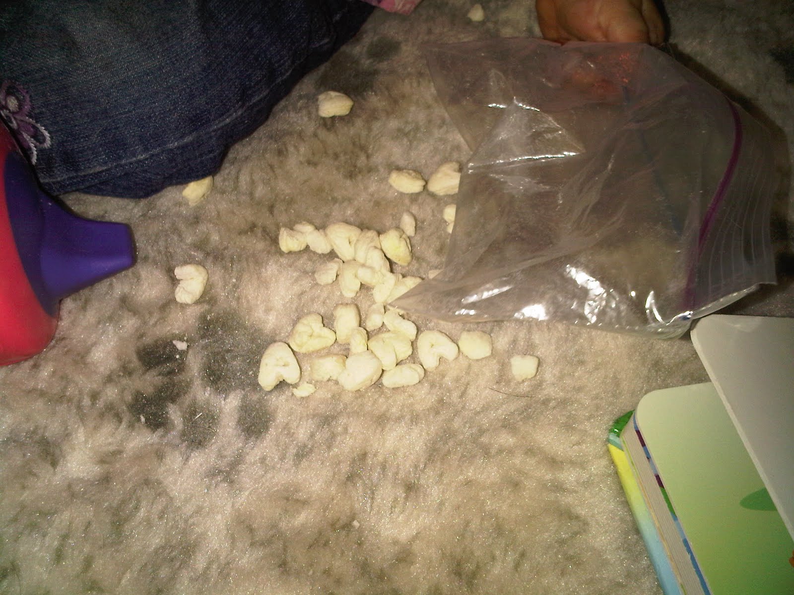 Yes, that is a paw print next to the cereal. It is not mud. It is a design on the fabric. Ainslie chose to eat her snack on Shadow’s bed. Kids are exhausting.