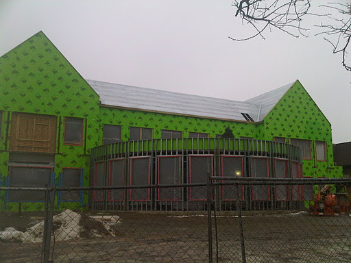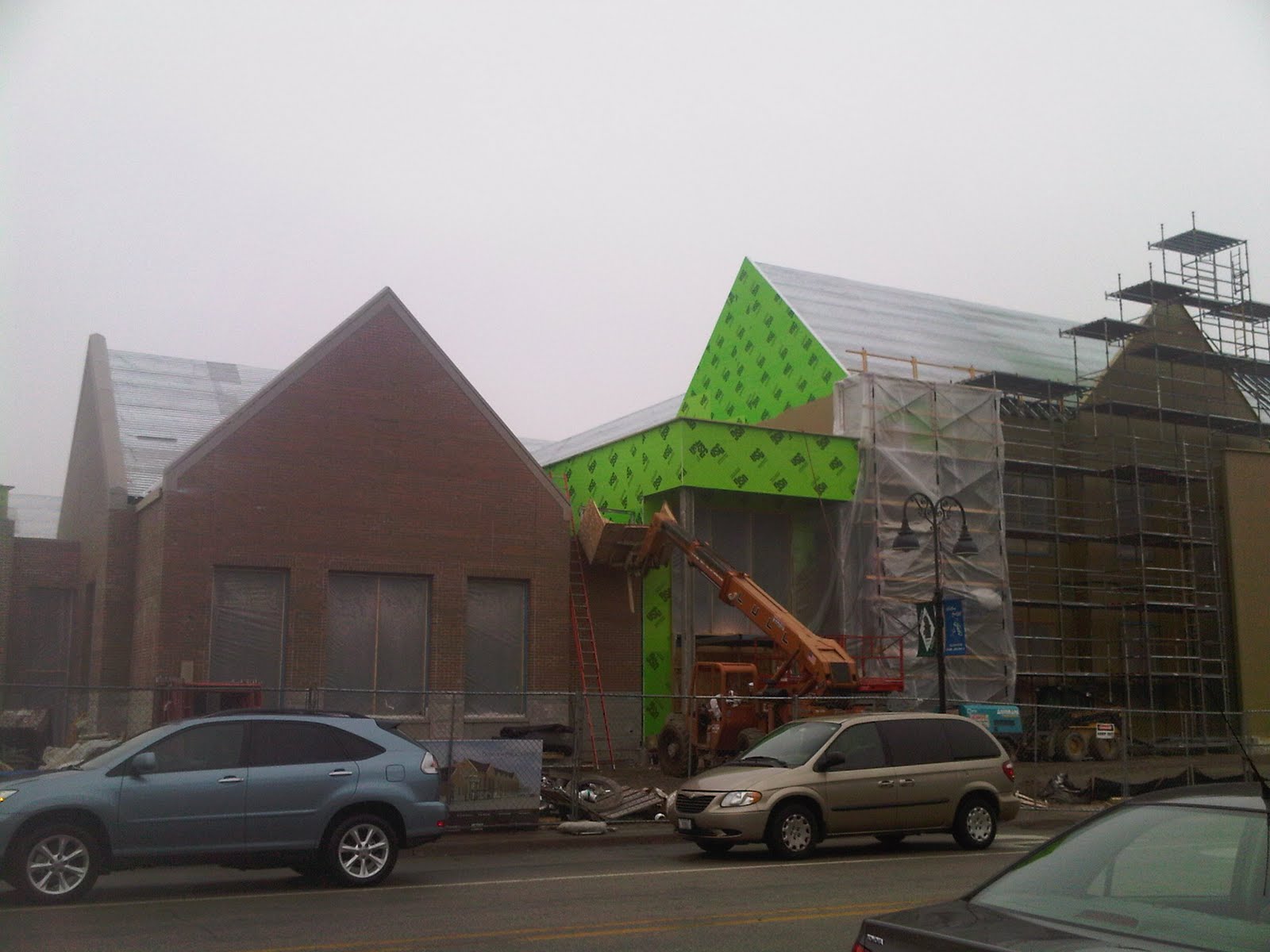 This is the corner of Glenview and Harlem. There are bricks! I have seen the blueprints dozens of times and am still not sure where the entrances are. But this looks like there will be doors here, I think. I know the parking lot is going to be where the current library stands.