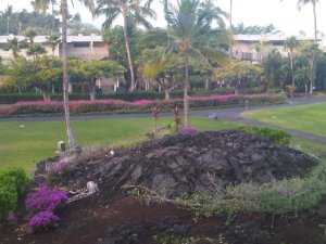 It is pretty in a less-beachy-more-organic sort of way, which I like.  The “organic” being volcanic rock.  This is outside my window: