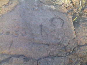 Then I see the first petroglyph, which happens to be about the best shot I could get of the carvings. The rules are very strict in trying to preserve them – stay on the trail, no rubbings, etc. But there wasn’t really anyone around to enforce it.