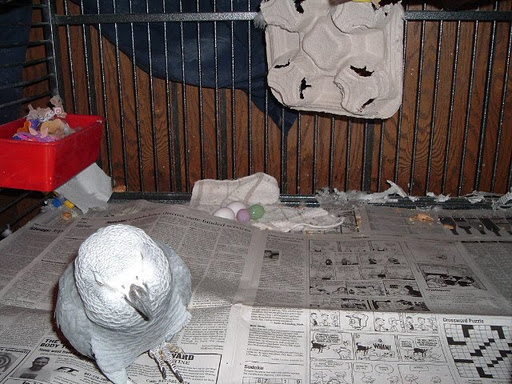 Her feathers are near perfect. She is flighted and takes good care of them. She also grooms her beak and nails, so the vet tech didn’t have to take out the Dremel drill. She is very vain. And apparently, very hormonal. This is the time of year when she thinks about laying eggs and the doctor confirmed that her vent is dilated. Ugh.