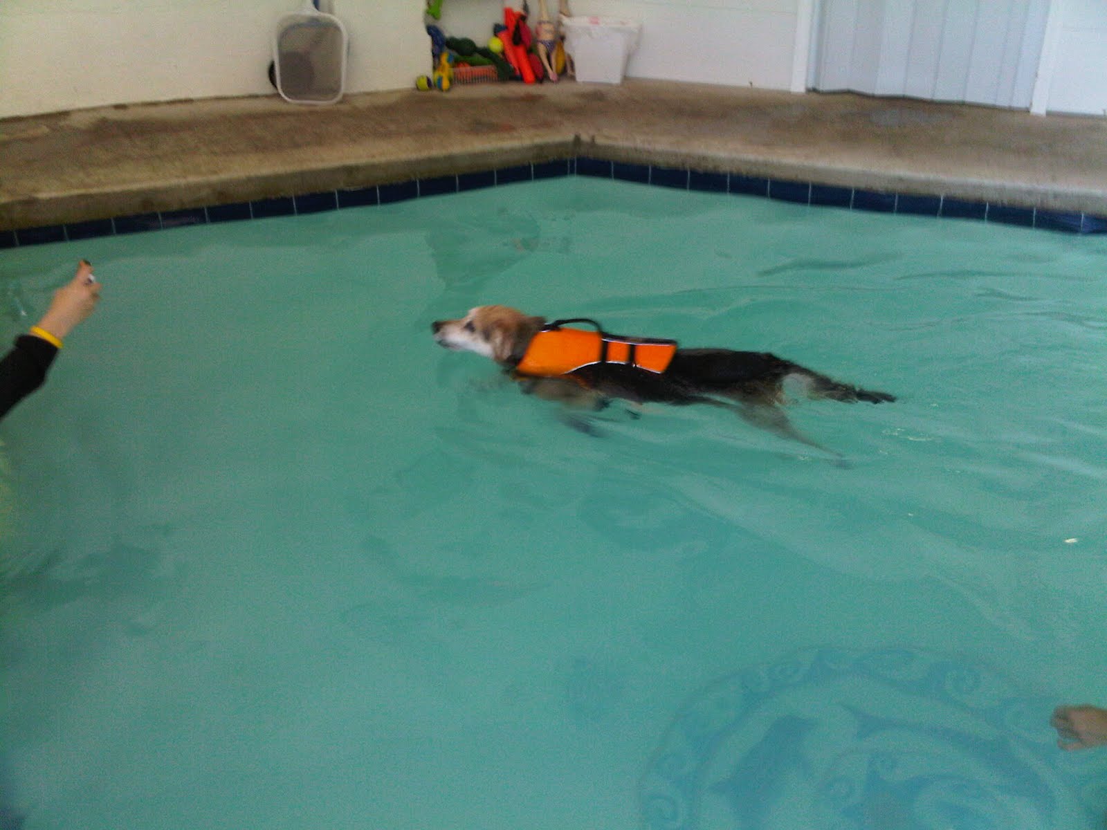 My dog, Shadow, is 12 years old and has several health issues – one we haven’t even identified yet. But the arthritis in his hips has grown worse and the vet recommended hydrotherapy. As in going swimming – so as to get some exercise without the pressure on his joints.