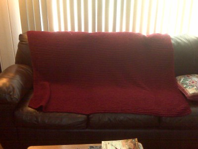 For my own notes – the color was Garnet and the yarn was TLC Amore, which I can’t seem to find at Michael’s or Joann anymore. Too bad, because it was soft, had an interesting texture, wasn’t too stringy, but just enough to hide my newbie mistakes.