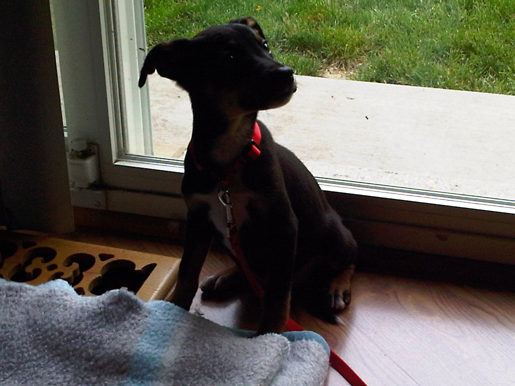 I will have stuff to say about the adoption experience soon, but now I am tired.  Because I have a puppy.  Kiwi the Grey seems pleased.  Spooky the cat is looking imperious and disdainful.  Sigmund the Foster Grey doesn’t understand what the fuss is about.
