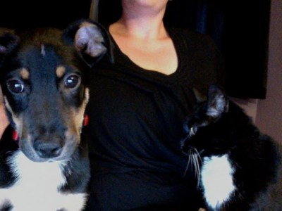 And because Fluffycat like the updates, there have been one or two confrontations with Spooky the cat. He moves in fast, which Spooky hates, but he seems to have figured out that the cat doesn’t want to play with him. When he gets too close, Spooky will smack him and he will back off. No drama. This picture is cheating, in that I took it last week. The point here is that sometimes, Spooky is the one that moves in and starts it: