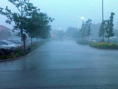 It was officially the biggest one-day rainfall total in Chicago history. When I got home, he was totally fine. Excellent.