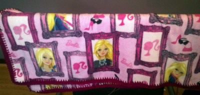 Barbie fleece? Really? Wat would one reasonably do with that? Kiddie pajamas, maybe? She looked less slutty than usual, anyway.