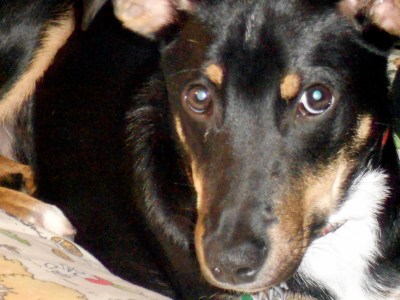 We took him to fancy pet store on Saturday, after a trip to the vet. He behaved nicely, even when the Boston Terrier snapped at him. He is doing better with the coming when he is called. Now we are working on “lie down”. He generally sleeps in my bed, but did fine with my mother and the cat when I was in Washington.