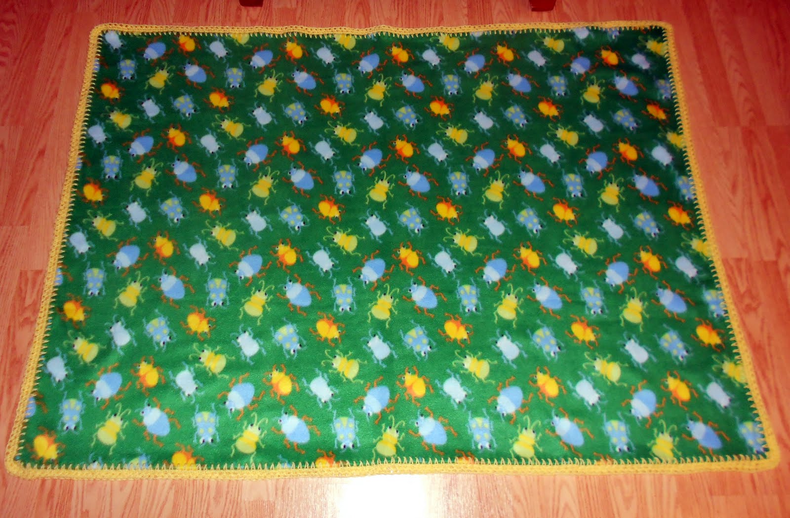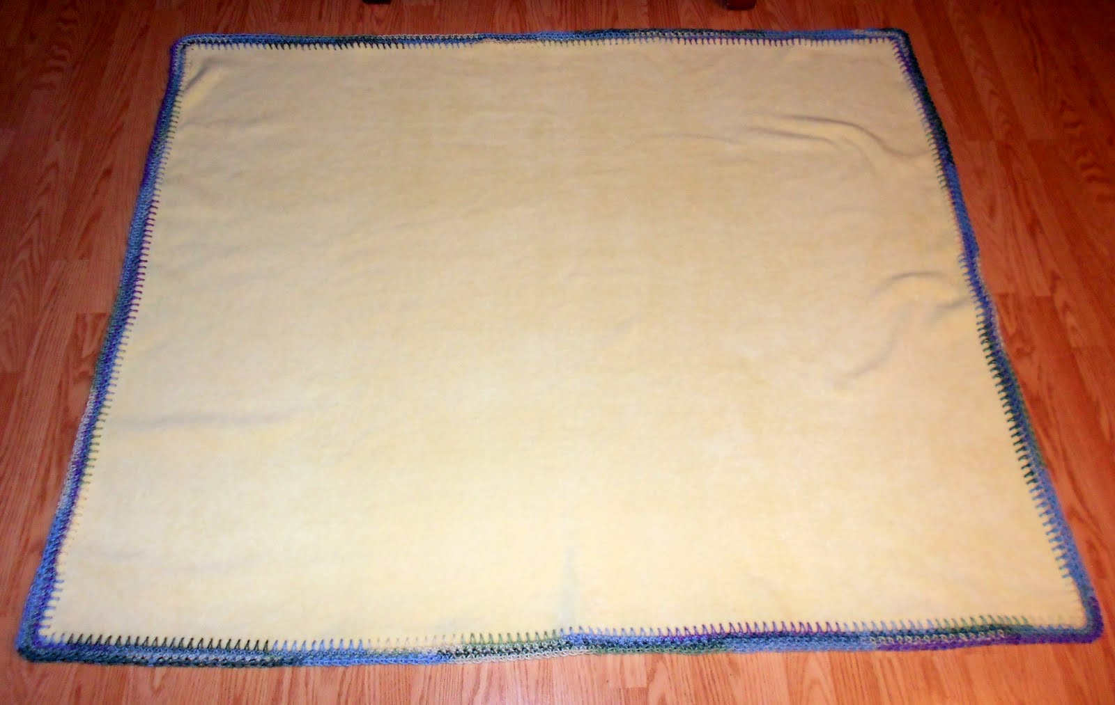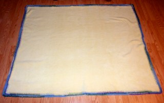 This actually is a yellow fleece. Four rows single crochet in Red Heart’s Watercolor.