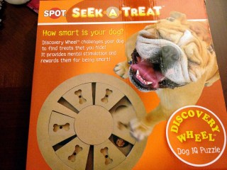 I gave him a quick demo by putting a small treat into two compartments. One was open and he snatched it up. Then he watched me open the other so he could grab the second treat. Then I picked it all up and loaded it all up. Then I gave it to him and this is what happened (only the first minute is really worth watching):