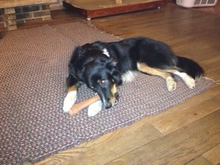 She is still very focused on her job as a herding dog. She cannot seem to relax when the birds are out, and we have to keep her on a leash for those couple of hours. She is also completely obsessed with a tree in the neighbors’ yard – the squirrels live there.