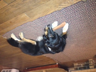 She only wants to play with toys when Gibbs has them. First it was just tennis balls. Then she graduated to stuffed toys a in the previous Tug o’ War pic. Then the bones. And my mother said that while I was out of town, she had to let them outside one at a time to do their business or they would just start wrestling.