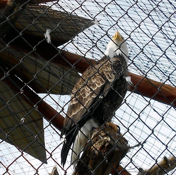 This one has a broken wing and will live out his or her life at the center.  I actually saw one eagle in the wild.  Would’ve missed it, except another tourist had stopped his car and was pointing a camera right at it.
