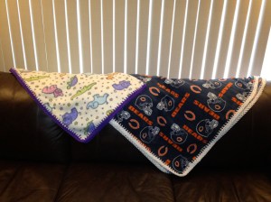 Today was the bi-monthly Blanket Day for my chapter of Project Linus. I hadn’t quite finished my stash, which is ok because Starbucks night is this week. However, I managed to bring in five: