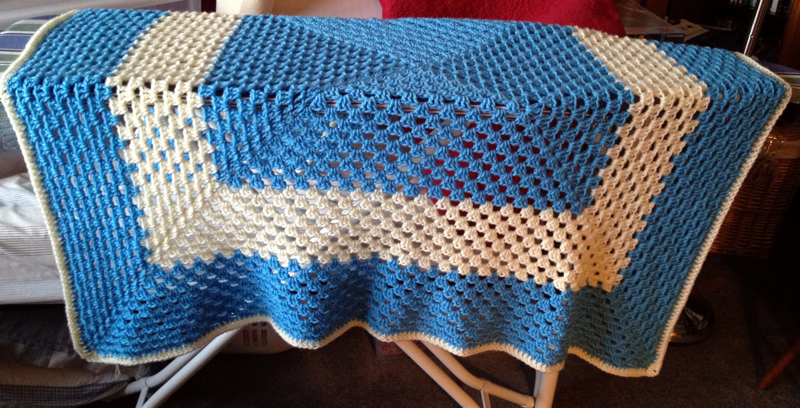 We’ve had several Project Linus events going on and coming up, so here are my most recent blankets. We begin with my first granny square blanket ever:
