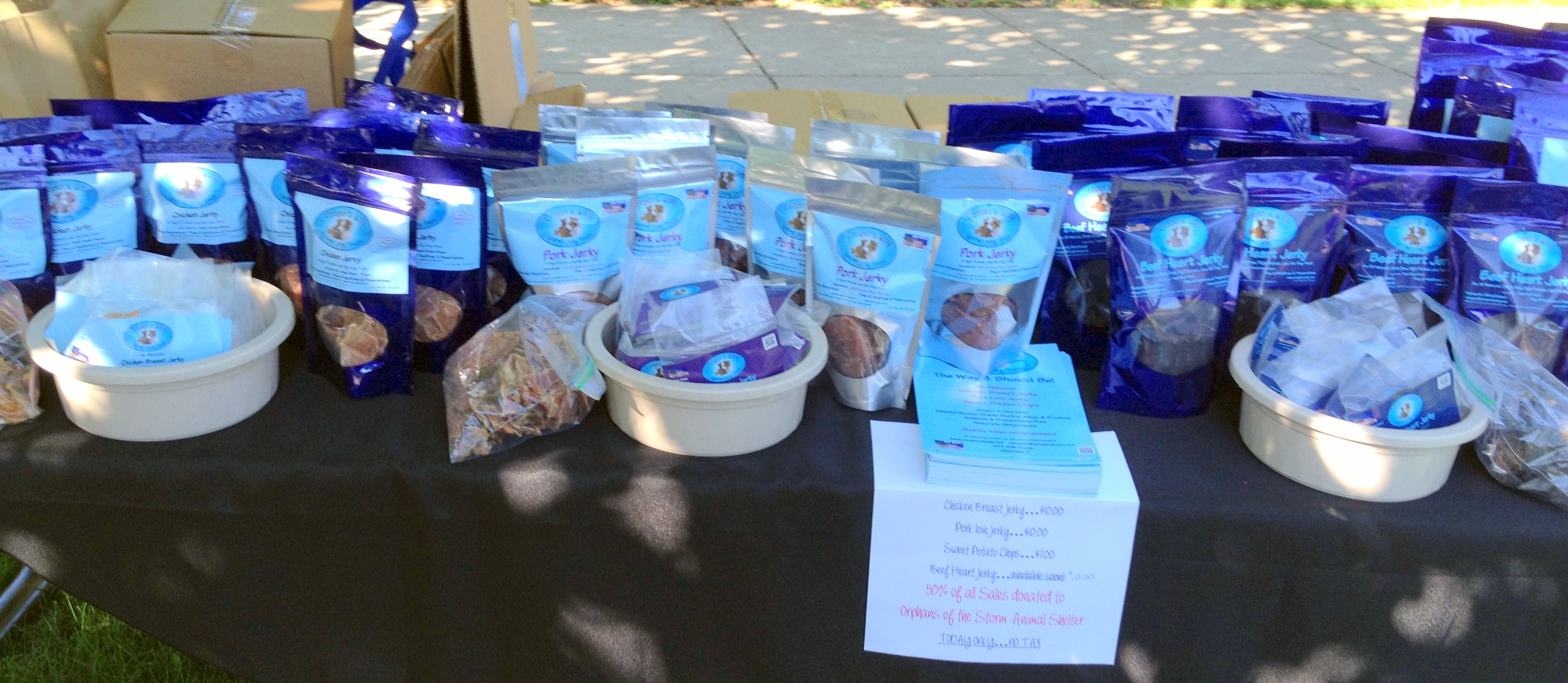 Coopers Way, a dog treat company in Glenview, had a table selling all-natural jerky treats. 50% of the proceeds went to Orphans, so we went in for a bag:
