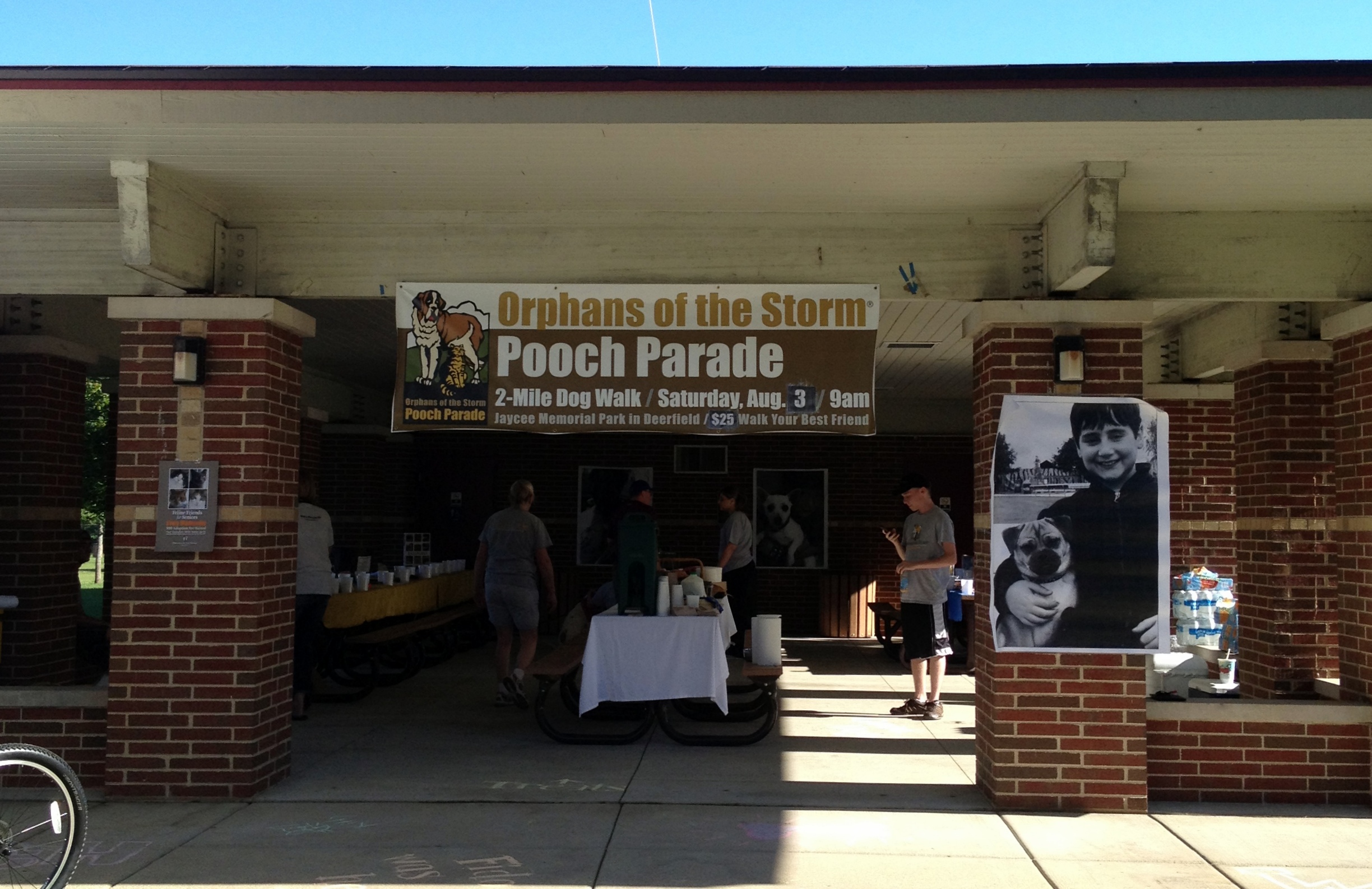 Due to The Incident, I had to cancel a trip to St Louis with my nephew. So I was available for yesterday’s Pooch Parade, and my doctor cleared me for it. This was the 7th Annual 2-Mile Walk to raise funds for Orphans of the Storm, the no-kill shelter where I adopted the Late Great Dallas. Fiona and I participated last year, and had a great time.