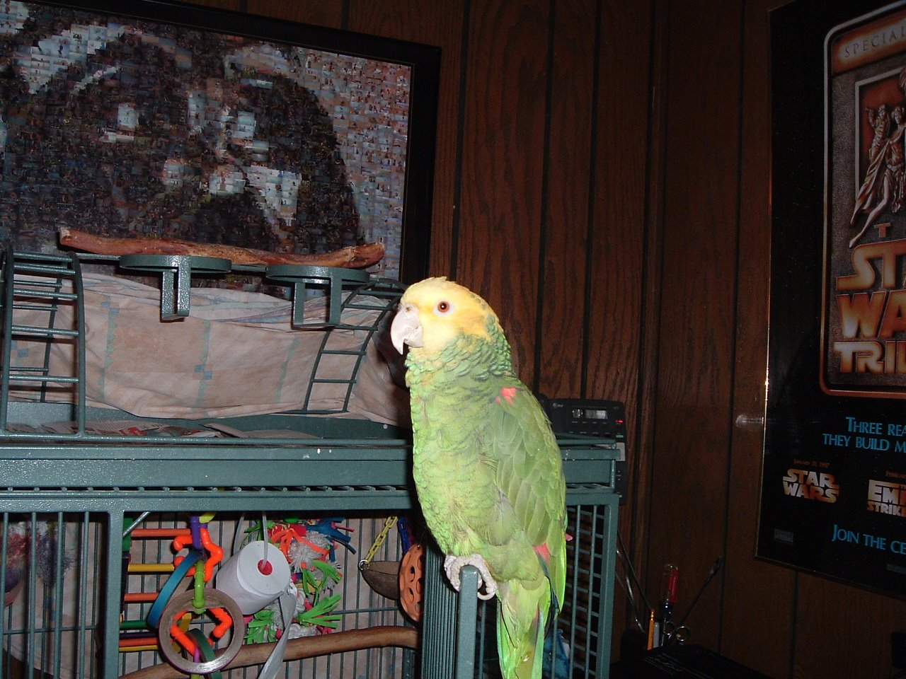 When the bathroom gutted last week, I had to send Kiwi the Grey and Manu the Foster Amazon to board at the Refuge. We had to put them in rather small cages – Kiwi’s was too small for many of her long, hanging toys. And I was worried about them both. The job took six days and they didn’t work on the weekend. I called the Refuge on Saturday to say that I couldn’t pick them up until Tuesday. And I asked how they were doing. Manu was a “complete delight” with our director. And “a little stinker” with every other person that approached him.