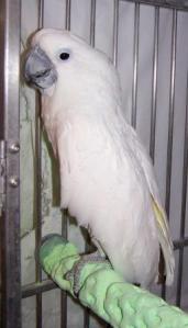 She is motivated by almonds, which always helps in training. She is not afraid of people. Not afraid of other birds. She just isn’t entirely comfortable. She needs some quality time.