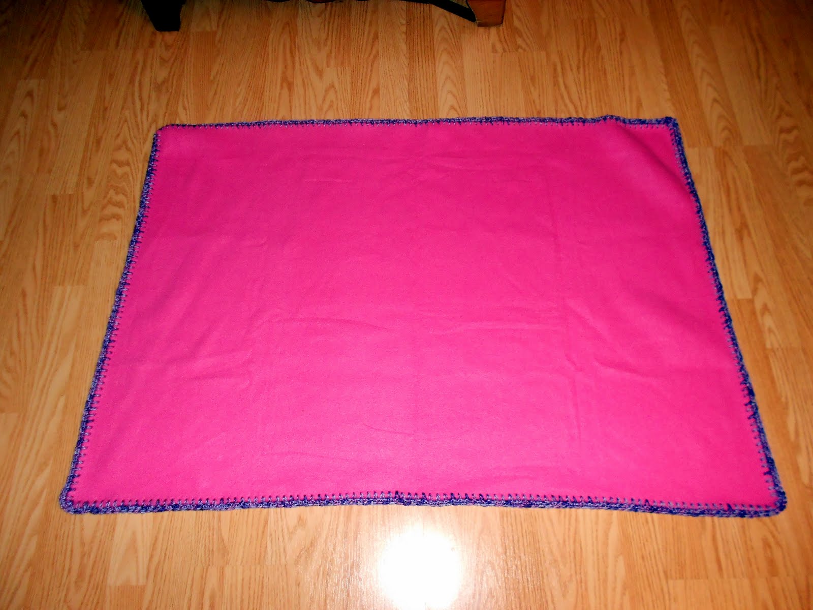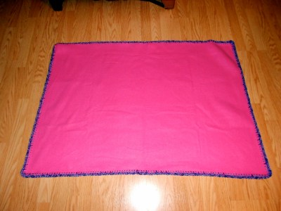 The above pink fleece with Red Heart Soft yarn in Plummy, left over from a previous project.