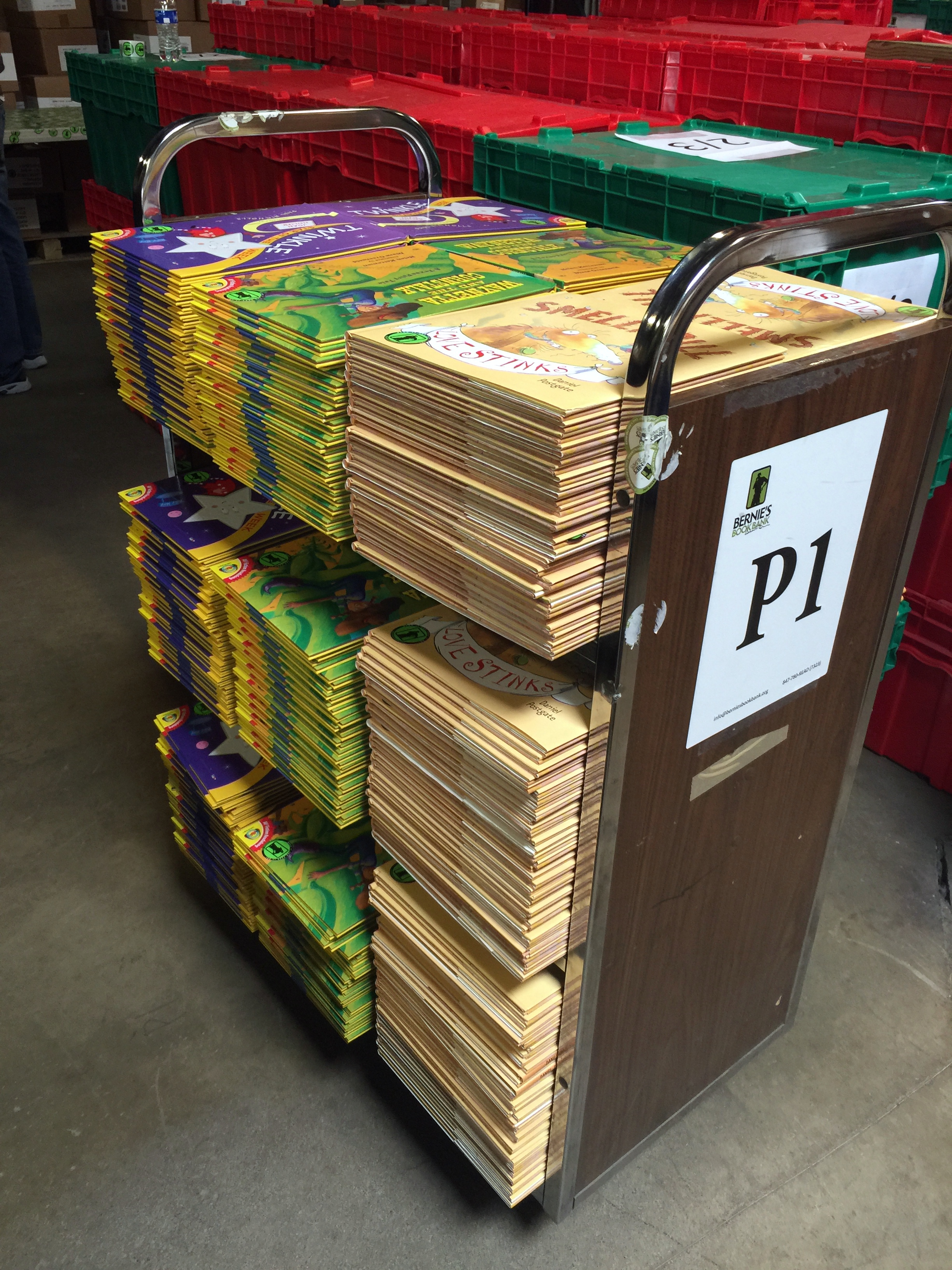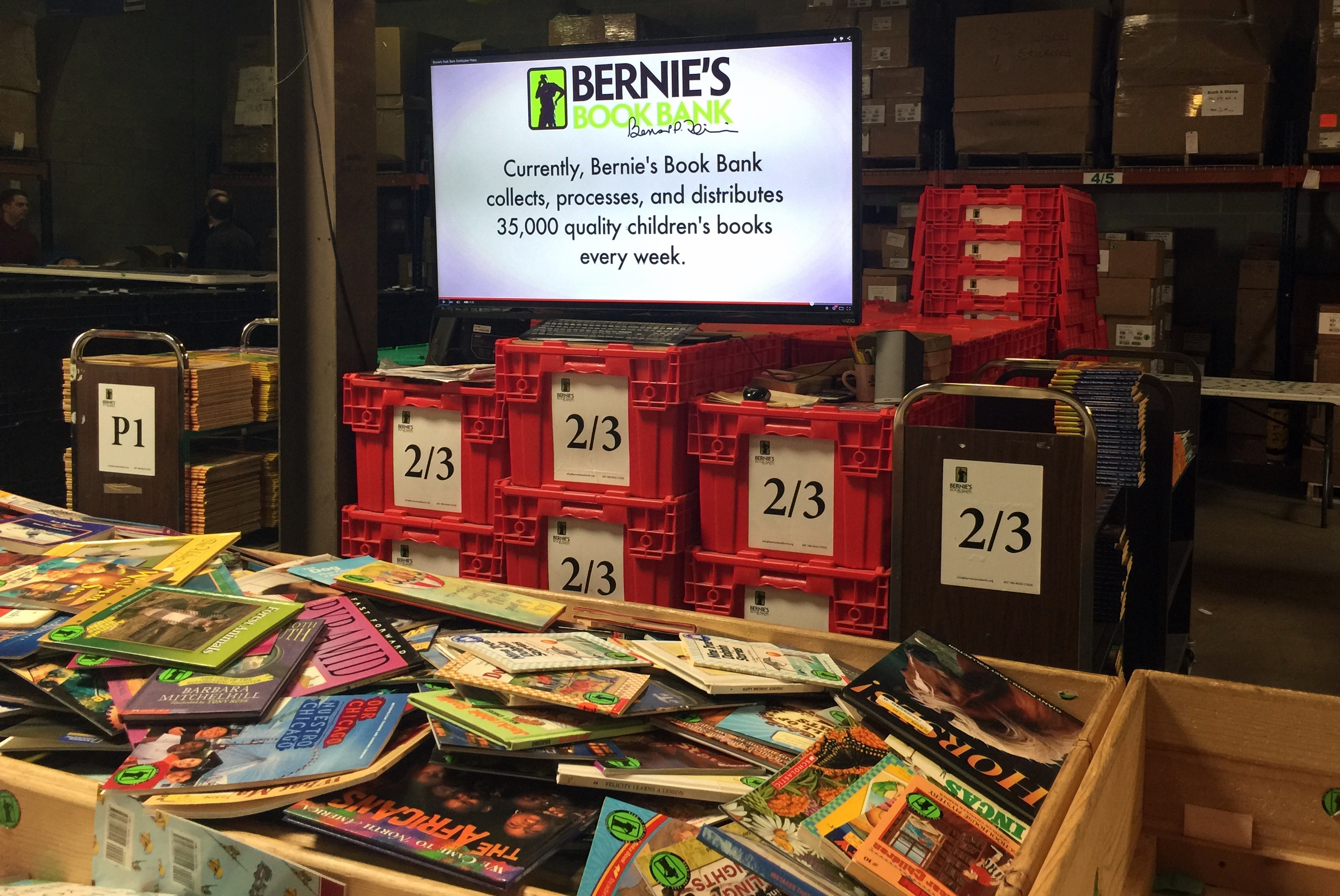 I may have mentioned that my awesome employer allows for each of us to have two work days each year for volunteering events. Last week we spent some time at Bernie’s Book Bank. Their mission: “facilitates the collection, processing and redistribution of new and gently used children’s books to significantly increase BOOK OWNERSHIP among at-risk infants,