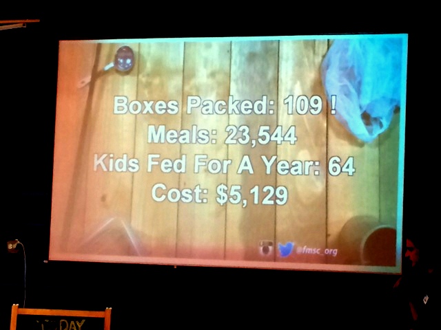 FMSC organizes volunteers to package meals – specially formulated for maximum nutrition – to partners around the world who distribute them to children who are literally starving. There is a location right near my office and volunteers are organized every day in two hour shifts. Food is scooped into the bags, weighed, sealed, boxed and labeled for shipment. The meals we packaged were rice-based with soy protein and added vegetables and vitamins. It looked like your average pre-packed rice dishes from the grocery store.