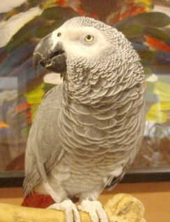 Vito is an African Grey at the rescue that came in with my foster bird, Sigmund. I hung out with him while I was working tonight, and wondered for the hundredth time why he hasn’t been adopted yet. He is about the most well-rounded Grey we have. He has the beginning of a vocabulary, is fully feathered, is a good eater and is not difficult to handle. Isn’t he pretty?
