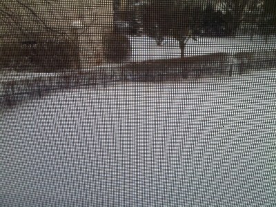 I did not take pictures of the Blizzard of 2011. OK, fine. (walks to the window with a phone.) Here is one. Just to prove I was here. From my bedroom window, you can see the snow drift going almost to the top of my four-foot fence. The drifts were justs as high in front of my garage and my front door.